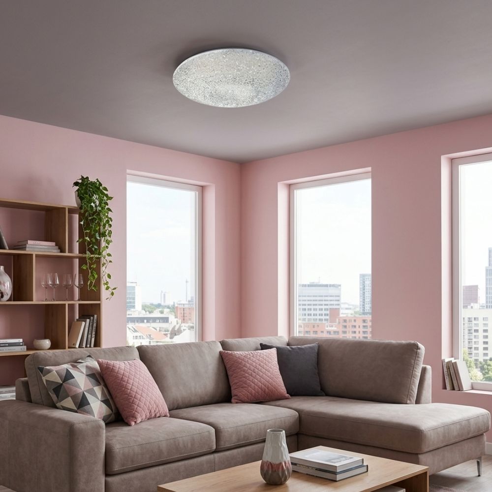 Spojite luksuzan dizajn i modernu tehnologiju uz LED plafonjeru R-A29. Ovaj model se izdvaja specifično strukturiranim akrilnim difuzorom koji verno simulira izgled svetlucavih kristala, pružajući vašem domu magičan sjaj. Zahvaljujući integrisanoj Smart tehnologiji, ovo nije samo obična svetiljka, već pametni sistem koji prilagođavate svojim potrebama.